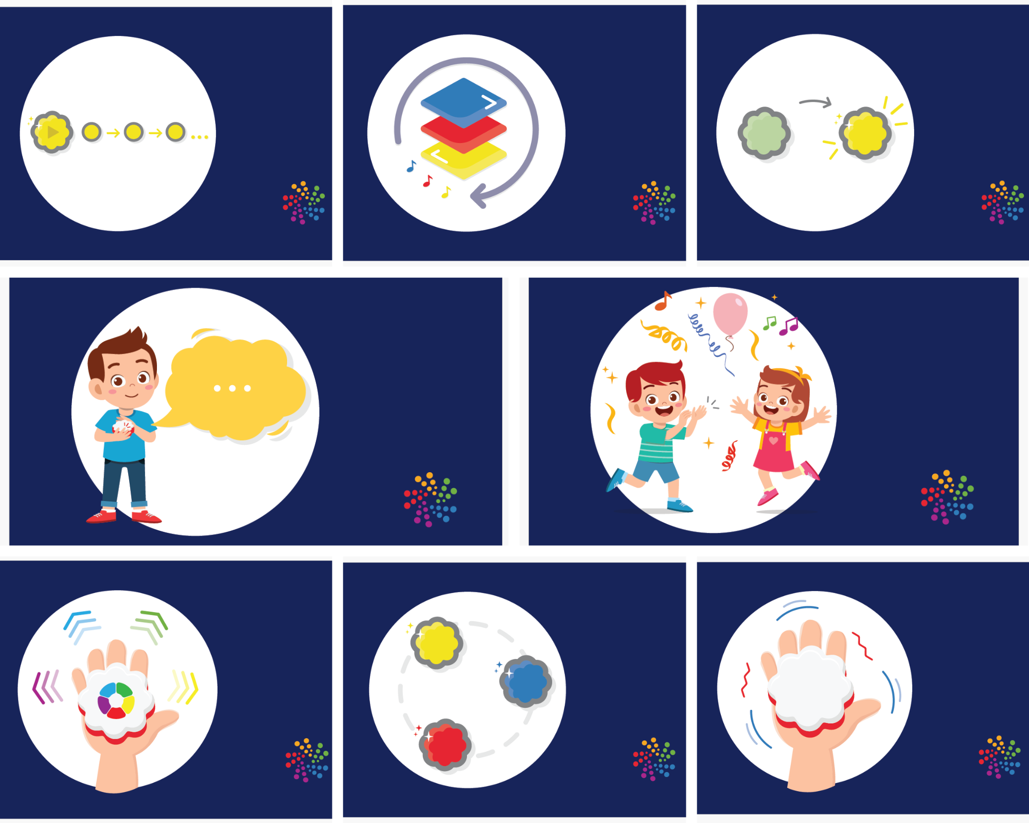 · Recording and playback of messages – each SENspark can record its own message, sound, or favourite song, and the child can activate it later with a touch.